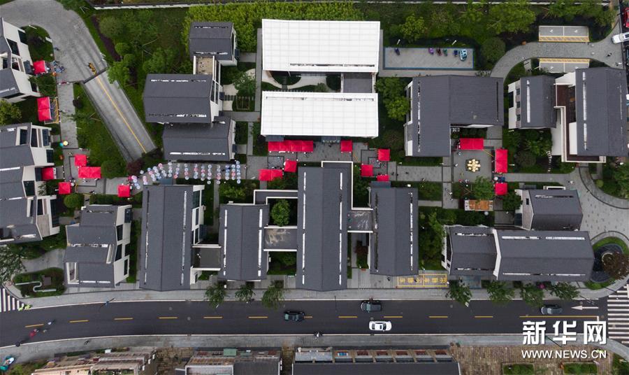 6月6日,空中俯瞰瓶窯老街內的非遺館群(無人機照片)。新華社記者 徐昱 攝