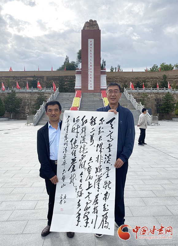 當(dāng)天,甘肅省延安精神研究會還向?qū)⑴_堡紅軍會師長征會師紀(jì)念園贈送了毛體書法作品。