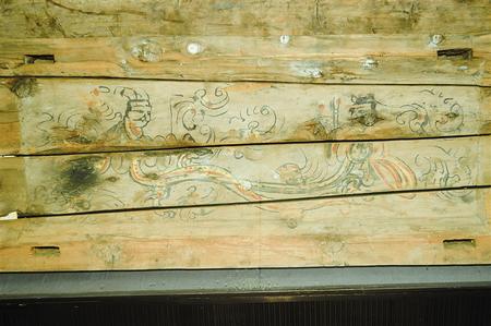2002年新城毛莊子魏晉墓出土女棺伏羲女?huà)z圖棺板畫(huà)(局部)。