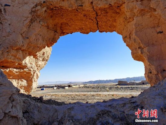 圖為冬日陽光下,山丹古長城遺址風貌。 翟繼宗 攝