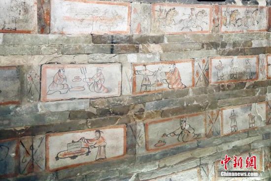 位于甘肅嘉峪關(guān)市的嘉峪關(guān)新城魏晉墓群,內(nèi)有千余座魏晉古墓,從1972年起,先后發(fā)掘18座,其中9座為畫像磚墓。磚壁畫取材于現(xiàn)實(shí)生活,用連環(huán)畫的方式反映出了當(dāng)時(shí)河西地區(qū)生活、生產(chǎn)、軍事、文化的真實(shí)情景,具有濃厚的生活氣息。目前只開放的六號(hào)墓,其壁畫內(nèi)容豐富,具有很強(qiáng)的代表性。高展 攝