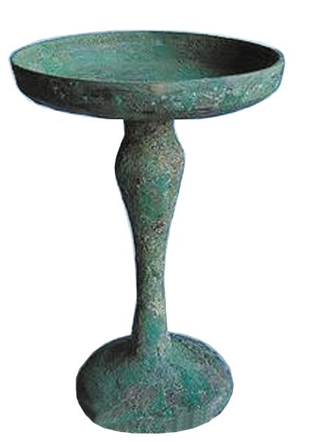 中國(guó)古代的照明工具,除掉最原始的火把,最早的是油燈而不是蠟燭,有關(guān)蠟燭的記載是漢代才有的。既然要用油燈,古人用什么器皿來(lái)盛放燈油和燈芯呢?人們找來(lái)找去,一種名叫“豆”的器皿脫穎而出。“豆”本為上古時(shí)代的一種盛食器,其上為圓盞盤(pán),中間為或長(zhǎng)或短的直柄,最下為喇叭或圓足形底座。簡(jiǎn)單地說(shuō),“豆”的形狀就像高腳盤(pán),一般用陶制,也有青銅或木制的,青銅制的用作祭祀禮器。“豆”的造型,完全符合人們對(duì)燈具的基本需求——既有能裝油和燈芯的淺淺的容器,又有方便移動(dòng)的把手。于是,人們就在“豆”的基礎(chǔ)上稍加修改,用陶土燒制出了最初的高腳燈具。