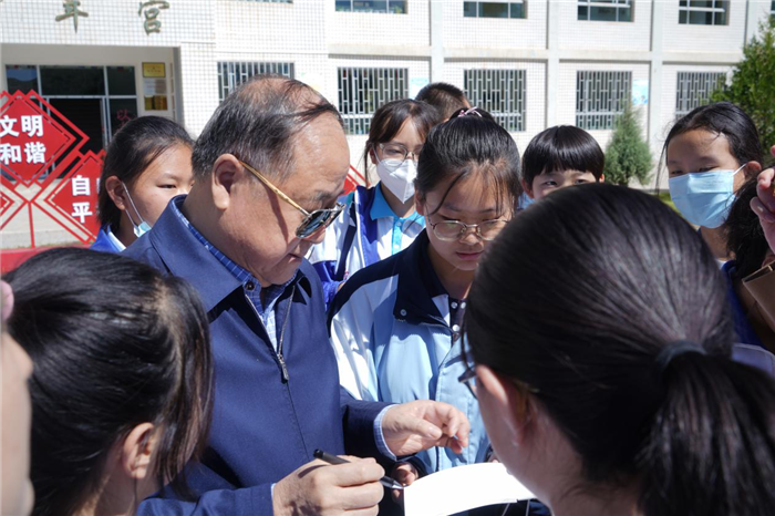 中國甘肅網(wǎng)9月6日訊 9月6日上午九點,由北京師范大學國際寫作中心、武威市教育局、武威市文體廣電和旅游局、涼州區(qū)教育局共同主辦的“山村公益文學課”暨“開學第一課”在武威第十一中學開講?;顒佑晌渫谑恢袑W趙衛(wèi)國校長主持。諾貝爾文學獎獲獎作家、北京師范大學國際寫作中心主任莫言教授以《讀書與寫作》為題,為十一中的師生講了一堂別開生面、深入淺出的寫作課。隨后,北京師范大學國際寫作中心主任助理翟文鋮教授、西北師范大學傳媒學院院長徐兆壽教授,分別就同學們的作文進行了現(xiàn)場指導。參加此次活動的還有北京舒同文化研究會會長王振先生、北京師范大學國際寫作中心主任助理張曉琴教授。