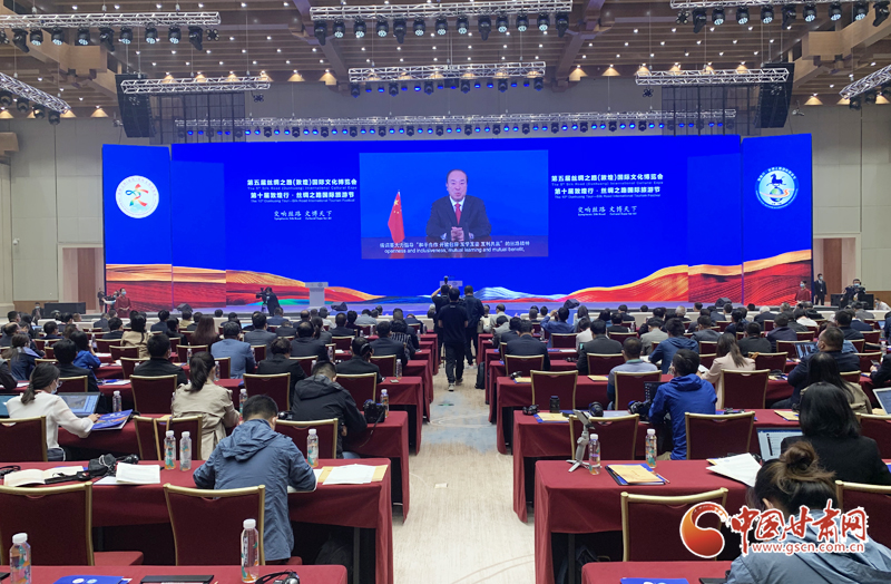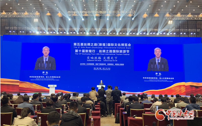 中國(guó)甘肅網(wǎng)9月24日訊(本網(wǎng)記者  宋芳科 楊亞楠 張振國(guó))9月24日上午,第五屆絲綢之路(敦煌)國(guó)際文化博覽會(huì)和第十屆敦煌行·絲綢之路國(guó)際旅游節(jié)開(kāi)幕。本屆“一會(huì)一節(jié)”由文化和旅游部、國(guó)家廣播電視總局、中國(guó)國(guó)際貿(mào)易促進(jìn)委員會(huì)、甘肅省人民政府共同主辦,以“交響絲路 文博天下”為主題,旨在進(jìn)一步加強(qiáng)“一帶一路”人文交流的官方合作和民間往來(lái),增進(jìn)共建“一帶一路”國(guó)家的文化認(rèn)同。中共中央政治局委員、中央書(shū)記處書(shū)記、中宣部部長(zhǎng)黃坤明以視頻方式發(fā)表主旨演講。