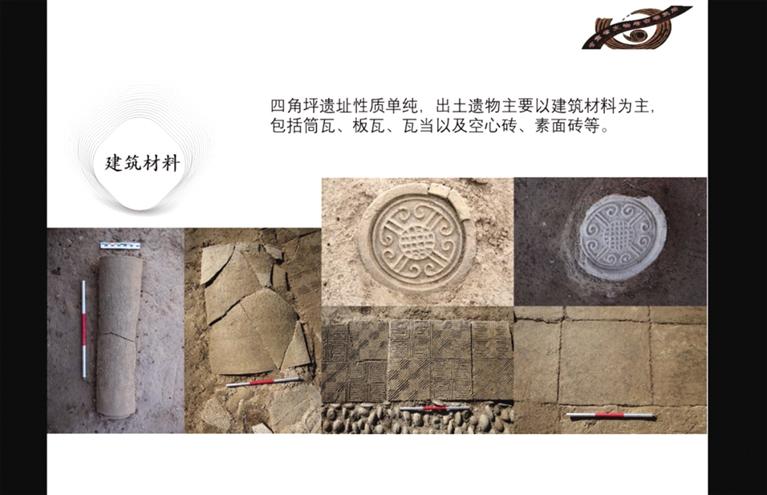 此前勘探發(fā)現(xiàn),四角坪遺址外圍為夯土圍墻,中部為面積約900多平方米的方形夯土臺基,臺基頂部四周有回廊式建筑。經(jīng)過兩年的發(fā)掘,摸清了夯土臺基的形制,發(fā)現(xiàn)了臺基中心較特殊的半地穴式建筑,以及臺基外圍第一排附屬建筑。每組建筑之間有寬約一米的夯土通道連接,建筑周圍散落各種建筑構(gòu)件,如板瓦、筒瓦、瓦當(dāng)、空心磚等。通過考古發(fā)掘顯示,四角坪遺址建筑體量巨大,等級分明,格局規(guī)整對稱,是秦帝國時(shí)期代表國家意志的禮制性建筑群。
