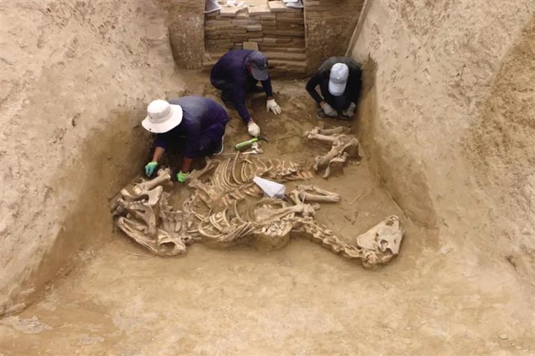 長嶺M1墓道內殉馬現(xiàn)場清理