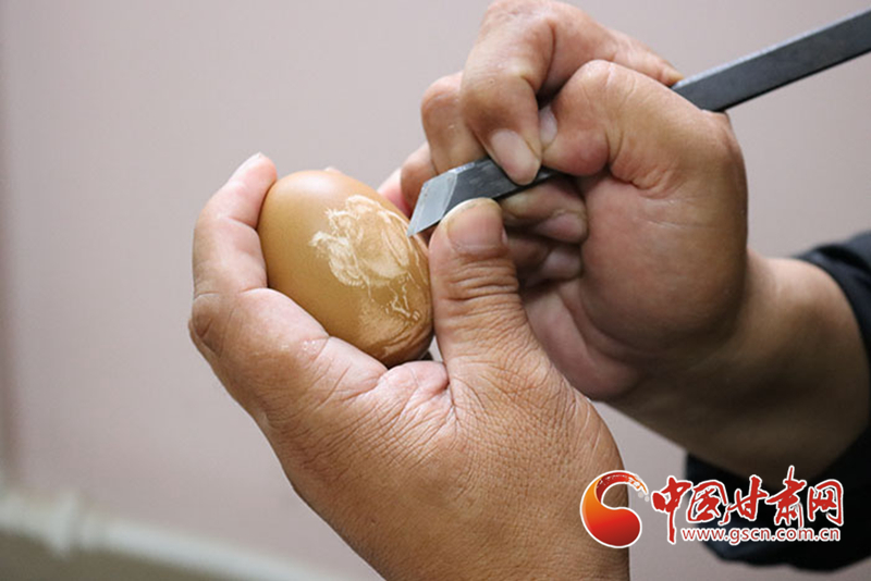 教學(xué)之外,劉財萬對傳播絲路文化同樣興趣濃厚。2018年劉財萬作為甘肅省殘聯(lián)代表之一參展絲綢之路(敦煌)國際文化博覽會,并為會上沿線城市所展示的歷史文化、民俗風(fēng)情、現(xiàn)代文化創(chuàng)新成果所折服。從那之后,劉財萬開始將絲路文化融入蛋雕之中,讓蛋雕成為絲路文化歷史傳承的創(chuàng)新載體。