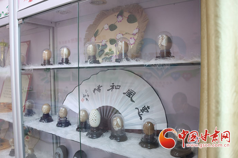 自2018年開始,蘭州新區(qū)新安社區(qū)為劉財萬的蛋雕作品專設(shè)了社區(qū)展柜,劉財萬可以為前來參觀的人們講解作品內(nèi)涵、展示創(chuàng)作過程。對劉財萬來說,這不但可以更好傳播蛋雕文化,也是分享自己生命體悟、生活方式的一個出口。