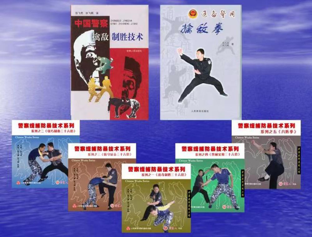 張飛虎在習武之余,學術(shù)上也一路精進,展現(xiàn)了他學文的天賦,他不但是警院教授,還曾是警院學報副主編,除了先后出版的4部學術(shù)專著外,還錄制了“警察緝捕防暴技術(shù)”系列教學光碟,在國內(nèi)外發(fā)行,并有一項科研成果申報為國家專利。一位武術(shù)名家,在學術(shù)上有如此驕人的成就,實屬不易。治學之余,張飛虎還分別在《甘肅公安》和《蘭州公安》雜志上創(chuàng)辦并主持《招招制敵》與《實戰(zhàn)練兵》欄目,解說并實戰(zhàn)演練制敵招法。專著《中國警察擒敵制勝技術(shù)》一書2010年被公安部評為“全國公安機關(guān)優(yōu)秀培訓教材”,書中首次提出了“軍隊擒敵技術(shù)和警察擒敵技術(shù)相殊差別”的觀點,并對擒敵技術(shù)的每一招法進行了生理學、生物力學的分析,從而科學地將擒敵術(shù)上升到一個新的理論與實戰(zhàn)融通的高度。更為可貴的是,《中國警察制勝技術(shù)》將法律精神融入其中,使招法的運用有了法律依據(jù),盡顯法制社會的時代精神,也與文明社會的要求不謀而合,將警察擒敵技術(shù)與實用法律無縫銜接。針對警察沿襲軍隊擒敵拳無主體身份特點之不足,創(chuàng)編了首套以警察擒敵技術(shù)為主體內(nèi)容的擒敵拳——《通備警用擒敵拳》,填補了公安機關(guān)無警用擒敵拳的空白。2021年,作為建黨100周年的獻禮,張飛虎與其摯友張勇先生聯(lián)袂出版《維穩(wěn)中國》,為國家反恐維穩(wěn)工作貢獻了綿薄之力。