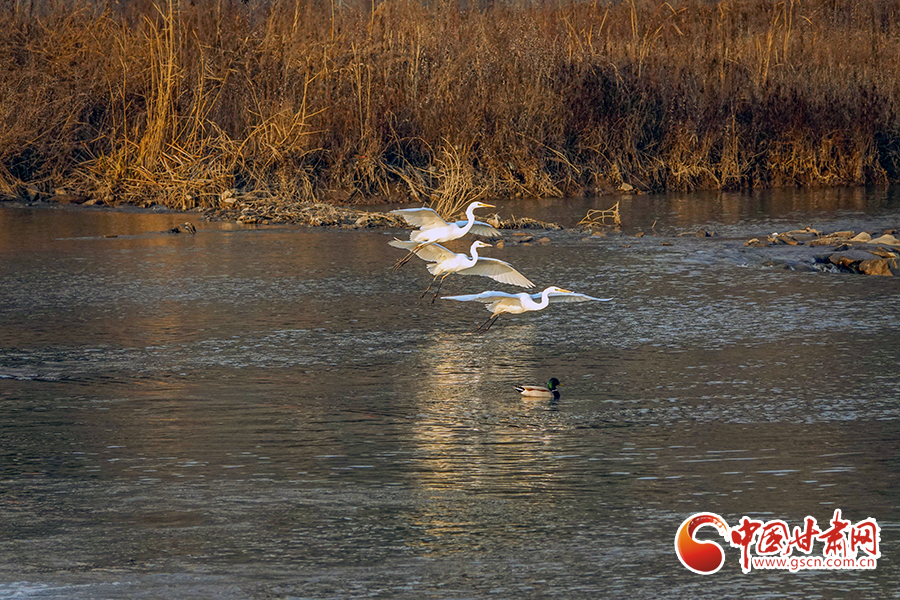 冬日暖陽(yáng)下,平?jīng)鍪谐缧趴h汭水河畔,波光與白鷺互為輝映,勾勒出一幅人與自然和諧相處的生態(tài)畫(huà)卷。