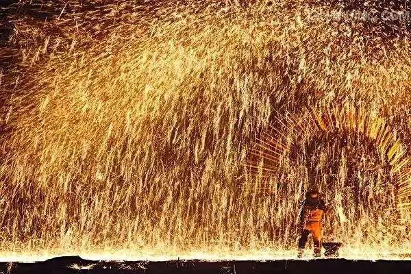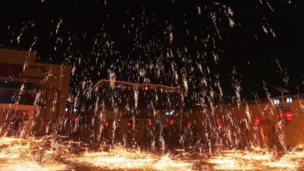 傳統(tǒng)“打鐵花”以老風(fēng)匣、小融鐵爐、耐火罐、陶勺、耐火鍋、木板等為工具;以生鐵、焦炭、木屑為原料,利用木板擊打熾熱的鐵液和木屑混合物,打出一朵朵千姿百態(tài)、爭(zhēng)奇斗艷、精彩紛呈、絢麗奪目的“鐵花”,由于其顏色吉祥,寓意美好,因此,農(nóng)村都喜歡通過(guò)“打鐵花”來(lái)祈盼來(lái)年風(fēng)調(diào)雨順,國(guó)泰民安。