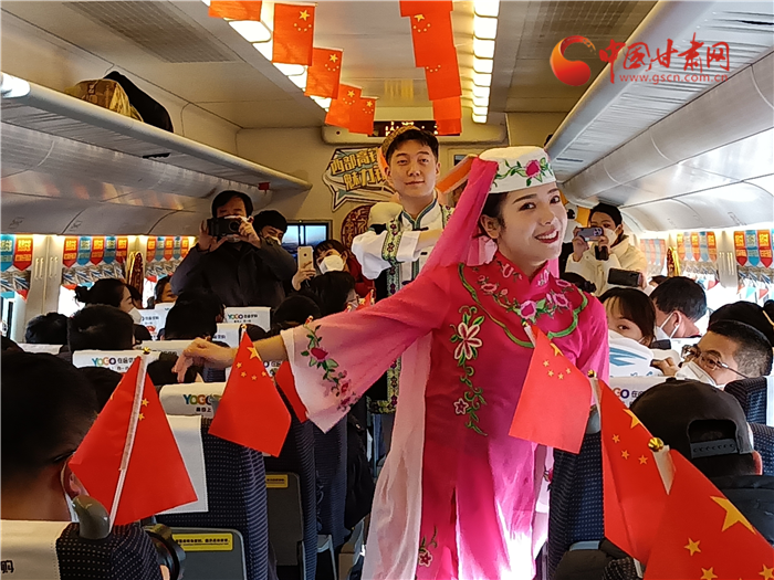 飛天與花兒相擁,甘肅與寧夏直通。蘭銀高鐵中蘭段開通,也讓銀蘭高鐵全線貫通。為了慶祝這一歷史時(shí)刻,D9058次列車乘務(wù)組準(zhǔn)備了精彩的節(jié)日。《花兒與少年》展演寧夏風(fēng)情,遇見塞上花開。敦煌樂舞,充滿甘肅元素講述飛天故事,巧妙的節(jié)目安排生動地展示了甘肅、寧夏兩省區(qū)的文化元素,讓旅途不僅有一路風(fēng)光,更有一路風(fēng)情。