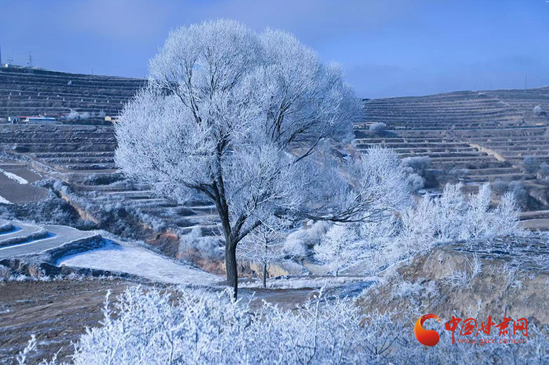 冬日美景,霧凇奇觀。近日,定西市安定區(qū)石泉山上,氣溫驟冷,山頂上的樹木一夜之間形成各種霧凇景觀,呈現出千樹萬樹霧凇花開的別樣景致,晶瑩剔透、熠熠生輝,宛如童話世界一般,令人心馳神往。