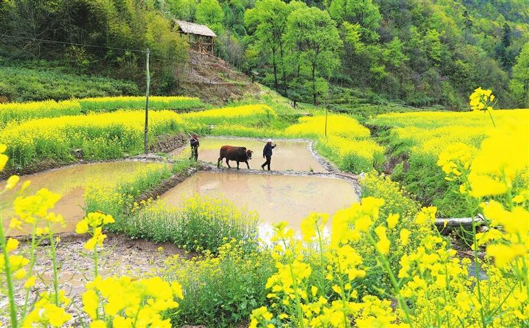 康縣陽壩鎮(zhèn)前山村村民正在翻耕水田,準(zhǔn)備培育水稻秧苗。新甘肅·甘肅日報通訊員 黃培軍