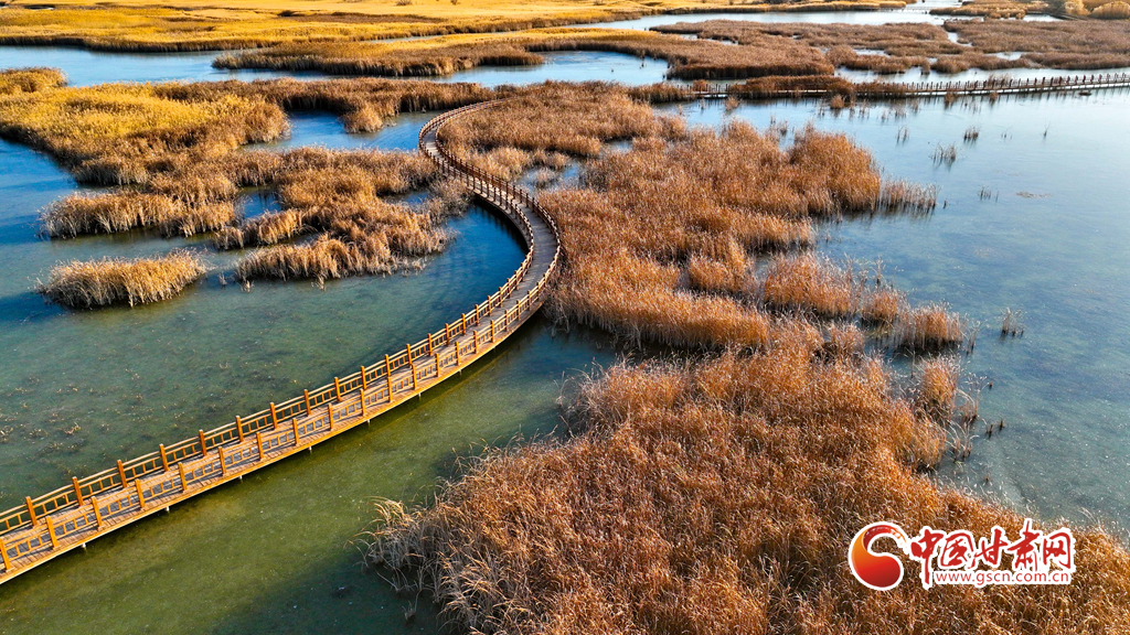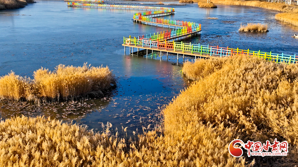 初冬時(shí)節(jié),張掖黑河濕地國(guó)家級(jí)自然保護(hù)區(qū)的蘆葦、蒲草等植物在秋風(fēng)、冬霜的吹拂下都變成了金黃色,密密的蘆花舞動(dòng)著裊娜的身姿,倩影婆娑,蘆葦叢里鳥鳴啾啾,整個(gè)濕地成為了一片金色的童話世界,讓人產(chǎn)生無(wú)限遐思。