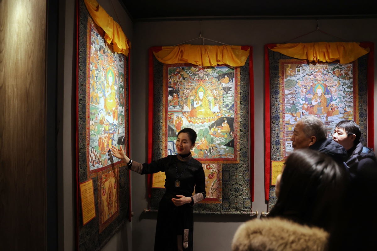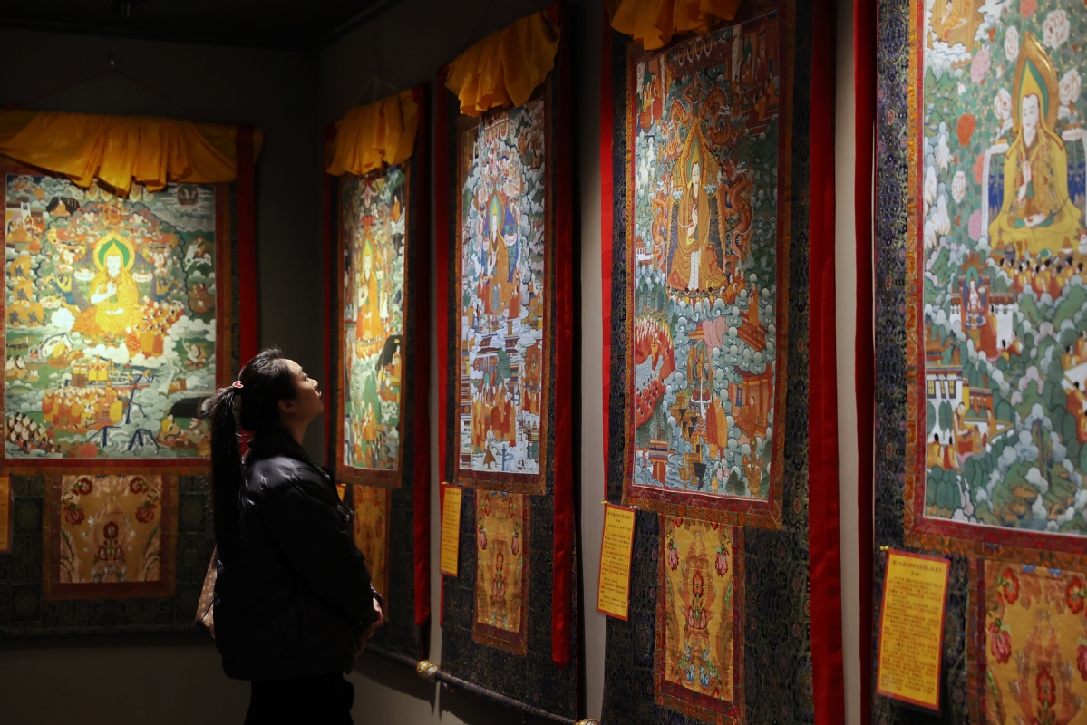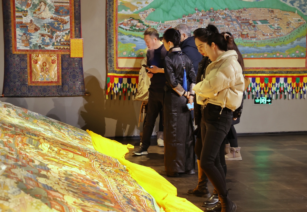 12月26日,北京,觀眾在皇城藝術(shù)館參觀《甘肅甘南非遺文化藝術(shù)展》。中國日報記者 姜東 攝