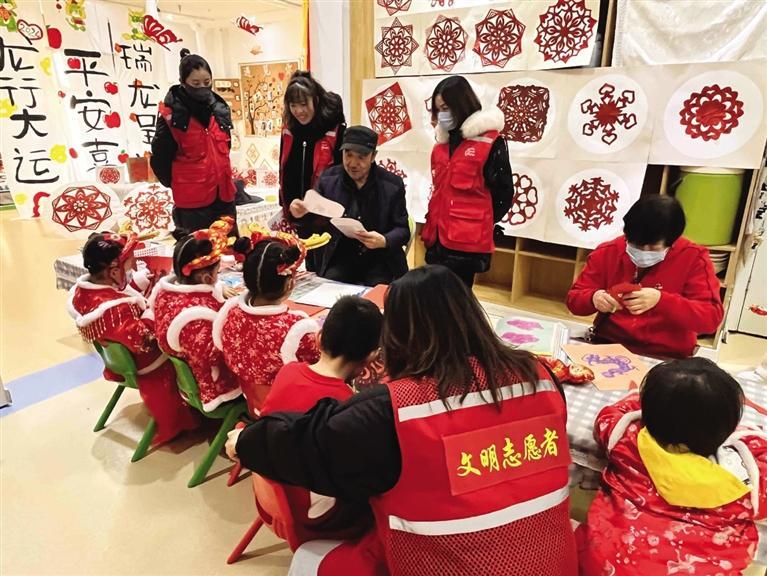 12月28日,西站街道西客站社區(qū)攜手華府寶貝幼兒園、蘭州市德鄰社會工作服務(wù)中心開展了“當(dāng)非遺遇上新年”慶元旦迎新年主題活動。社區(qū)和幼兒園特別設(shè)立新年館、騰龍館、京劇館、剪紙館、書畫館以及扎染館六個(gè)場館,讓非遺與元旦相結(jié)合,體驗(yàn)和傳承相呼應(yīng)。