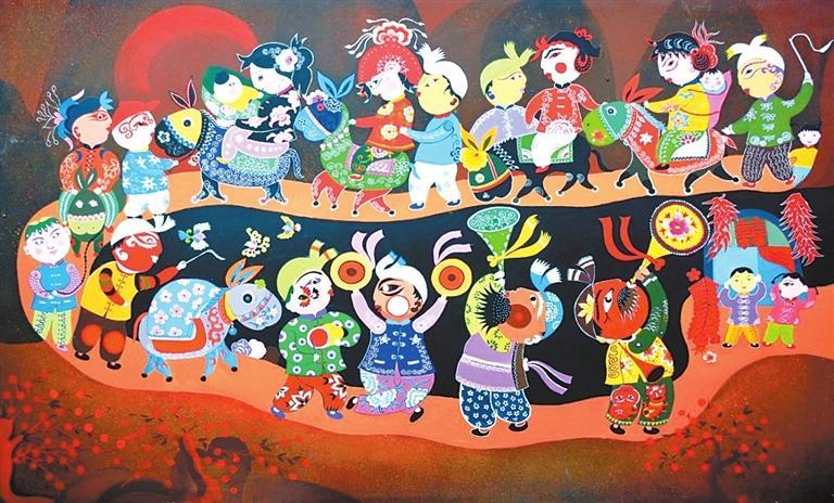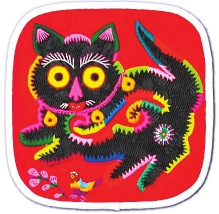 華池民間布貼畫是一種古老的民間工藝美術,是隴東文化的重要組成部分。華池拼布創(chuàng)作以粗布為原料,色彩豐富鮮艷,剪貼的邊線明朗整潔,富有木刻版畫的刀木特點。其內(nèi)容多取材于人物、動物、花鳥等題材,注重色彩對比,以大紅大紫的色彩,夸張化的描述,追求強烈的直觀效果,講究裝飾性;風格浪漫稚拙,渾厚質樸,氣韻生動。