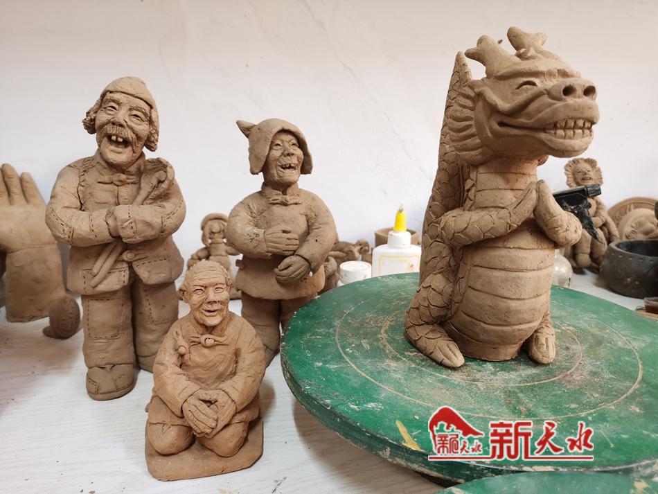 展示架上,一眼望去,那一個個嘴巴微張、憨態(tài)可掬,融入卡通元素且寓意新年萬事順?biāo)?、寓意風(fēng)調(diào)雨順的生肖“拜年龍”“大嘴龍”“萌萌龍”神態(tài)各異,讓人感受到吉祥喜慶的年味。而那些以十二生肖為題材的其他泥塑作品亦是栩栩如生、活靈活現(xiàn),頓時讓這一方天地變得可愛而親近。