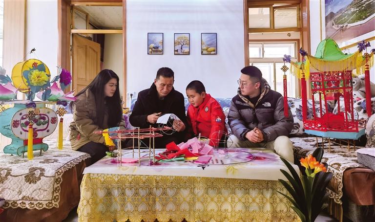 正月初十,記者走進(jìn)魏世發(fā)家中,院中一盞盞精美的花燈擺放有序,色彩鮮艷、栩栩如生,呈現(xiàn)出皋蘭傳統(tǒng)手工花燈技藝的魅力。朱榮亮是石洞小學(xué)二年級學(xué)生,一次偶然的機會接觸到什川花燈,便產(chǎn)生了濃厚的興趣。他說:“以前見到花燈我就非常喜歡,今天媽媽專程帶我來到魏爺爺家學(xué)做花燈,非常有趣。以后有機會,我會帶著對花燈感興趣的同學(xué)來魏爺爺家跟他學(xué)做花燈。”