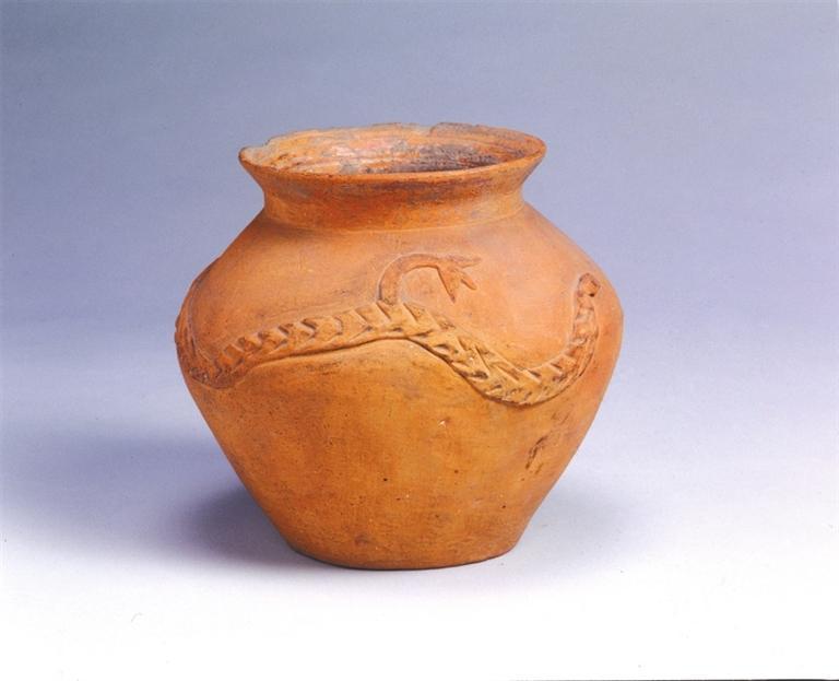 凸堆龍紋紅陶罐