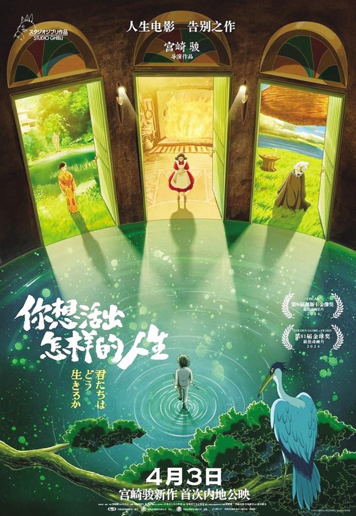 3月14日,剛剛獲得奧斯卡最佳動畫長片的宮崎駿新片《你想活出怎樣的人生》宣布定檔4月3日,同時發(fā)布了由吉卜力動畫工作室為中國觀眾特別制作的手繪版中文海報。