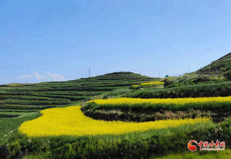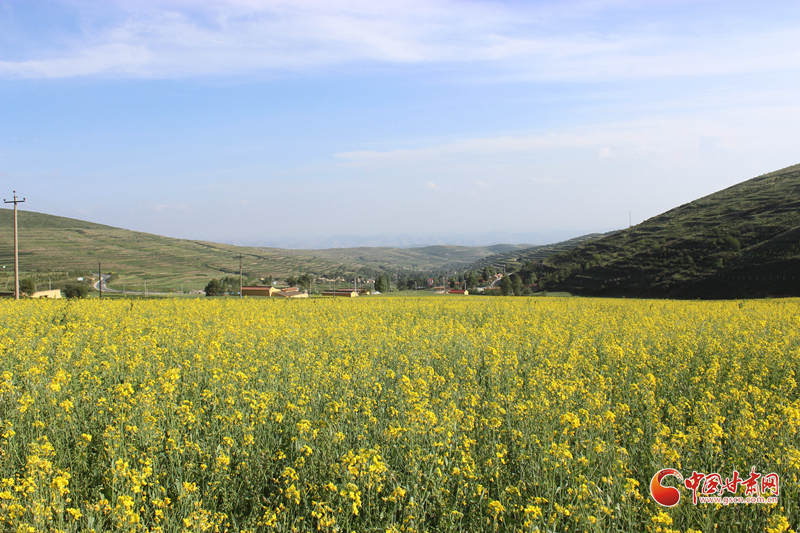 沿著普銀公路來到了被譽(yù)為“臨洮最北面的鄉(xiāng)村”的上營(yíng)瓦窯灘村。這是個(gè)寧?kù)o美麗的小山村,秋高氣爽,這里有一大片黃澄澄的油菜花地。一下車,站在普銀公路邊上,一眼望去,田間地頭,成片的油菜花與藍(lán)天白云青山交相輝映,村舍藏匿于廣闊的油菜花叢中,蜜蜂、蝴蝶在花叢中翩翩起舞,恰似一幅美麗的田園畫卷。