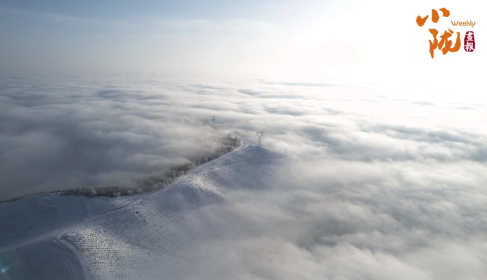 從高處俯瞰,白色的云海在大地上空翻騰涌動(dòng),時(shí)而聚攏,時(shí)而消散,田園、村莊在云霧中時(shí)隱時(shí)現(xiàn),如夢如幻。