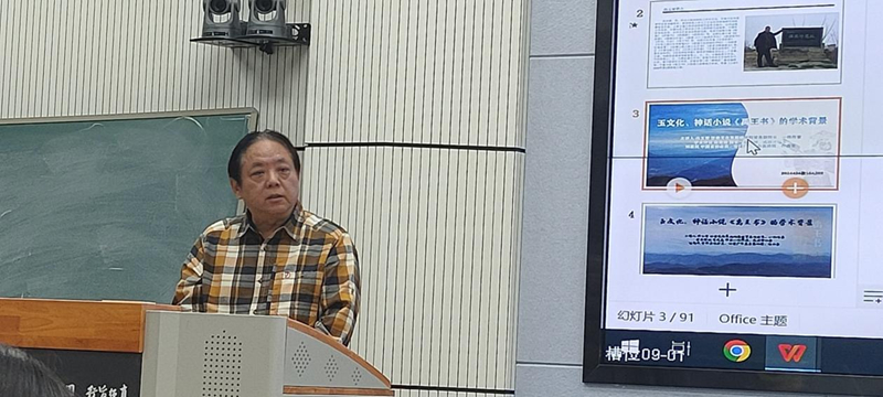 馮玉雷一直認(rèn)認(rèn)真真,埋頭干事。他心中有一個(gè)非常宏大的目標(biāo),向著這個(gè)目標(biāo)行進(jìn)過(guò)程中,腳踏實(shí)地。前幾年他在西北師范大學(xué)首開(kāi)公選課《中國(guó)玉文化》,把玉文化作為專門的一門課來(lái)講,具有開(kāi)拓性。玉文化作為一門學(xué)科,在全國(guó)各大高校此前還沒(méi)有先例,馮玉雷先生做了一件非常有意義的事情。這次講座對(duì)我非常有啟發(fā)。從這門課的內(nèi)涵來(lái)講,其實(shí)又是一個(gè)延續(xù):對(duì)傳統(tǒng)文化也好,考古文化也好,對(duì)甘肅省乃至整個(gè)中華大地,從玉文化開(kāi)始出現(xiàn),發(fā)展到現(xiàn)在,就是一種延續(xù)。玉和玉器至堅(jiān)至柔,至圣至潔,卻默默無(wú)言,但是它們告訴了我們很多以前不知道或者沒(méi)有意識(shí)到的信息,從重見(jiàn)天光的那一刻起,有無(wú)數(shù)信息在源源不斷的釋放,就看人們?nèi)绾卫斫?,如何解讀。如果不研究、發(fā)現(xiàn)這些玉器的內(nèi)涵,那還是相當(dāng)于某種意義上的沉睡。馮玉雷創(chuàng)作小說(shuō),研究玉文化,還組織十幾次考察活動(dòng),國(guó)內(nèi)的有些大家都參與,這像不像流動(dòng)的學(xué)術(shù)討論會(huì)?他的長(zhǎng)篇小說(shuō)《禹王書(shū)》出版剛剛一個(gè)月,據(jù)我所知,“玉文化、神話小說(shuō)《禹王書(shū)》的學(xué)術(shù)背景”講座是首次分享,他把研究成果、創(chuàng)作成果第一時(shí)間通過(guò)課堂與同學(xué)們分享,我仿佛看到他帶著學(xué)生勇往直前,義無(wú)反顧地向前走著,這本身就是玉文化精神的傳承和發(fā)揚(yáng)!我感覺(jué)到馮玉雷《禹王書(shū)》的思緒上下翻飛,縱橫馳騁,騰躍五千年。小說(shuō)中有非常核心的價(jià)值內(nèi)涵,就是玉文化本身所具有的、深深進(jìn)入到我們民族根脈中的文化內(nèi)涵,同時(shí),又有就是對(duì)文學(xué)的一種激發(fā)。小說(shuō)中的神話人物以及他們之間的交流、故事、語(yǔ)言,還有那些玉器,都非常神奇??梢灶A(yù)想,這本書(shū)的后延性非常長(zhǎng)遠(yuǎn),希望玉文化班的同學(xué)能夠在馮玉雷老師帶領(lǐng)下,傳承發(fā)揚(yáng)玉文化,完成從璞玉到玉器的轉(zhuǎn)化!