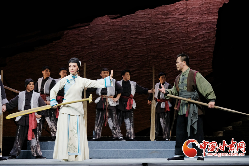 在唱腔設(shè)計(jì)上,該劇既有傳統(tǒng)的保留,也有創(chuàng)新的嘗試。在隴東老道情的基礎(chǔ)上,通過(guò)音樂和配器的創(chuàng)新,提升了音樂的張力和表現(xiàn)力?,F(xiàn)場(chǎng)演出采用了民族管弦樂隊(duì)伴奏,使音樂更具交響性,更加豐富多彩,這也是該劇音樂方面的最大創(chuàng)新。