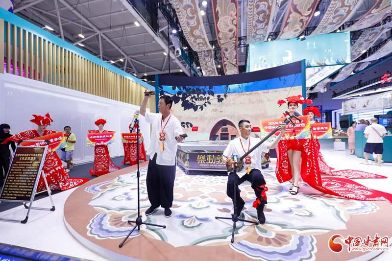 作為“一見慶陽”主題文化日活動(dòng)的一部分,慶陽剪紙秀+南梁說唱同臺(tái)展示,大氣、時(shí)尚,盡顯魅力的設(shè)計(jì)和展示,淳厚、粗獷,極具特色的吹奏和演唱,現(xiàn)場參觀者或駐足觀賞、或拍照,整個(gè)場館淹沒在濃濃的慶陽民俗風(fēng)味里。