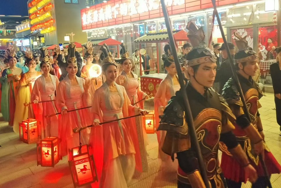 在漢唐天馬城西涼大劇院,大型沉浸式情景舞臺劇《天馬行》,用美輪美奐的舞美場面再現(xiàn)漢文化歷史,講述涼州的千年風華,帶領觀眾進行一次古今穿越之旅。