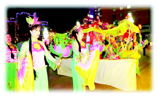 因著葫蘆河的哺育,也有了歷代風雅文人、賣漿者流或言志或抒情的傳承,秦安蠟花舞這項民間舞蹈藝術(shù)在千年的時光里熠熠生輝,散發(fā)出迷人的光彩。直至今日,表演時人們都是左手托舉花燈,右手持彩綢折扇,且花燈內(nèi)裝有點燃的蠟燭。