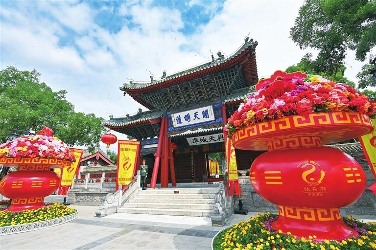 多年來(lái),天水市圍繞華夏文明傳承創(chuàng)新區(qū)和伏羲始祖文化傳承創(chuàng)新區(qū)建設(shè),不斷加強(qiáng)歷史文化遺產(chǎn)保護(hù),伏羲廟被列入全國(guó)重點(diǎn)文物保護(hù)單位名單,圪垯川遺址入選2021年“考古中國(guó)”重大項(xiàng)目,“太昊伏羲祭典”被列入首批國(guó)家級(jí)非物質(zhì)文化遺產(chǎn)保護(hù)名錄,“秦安女?huà)z祭典”被列入第三批國(guó)家級(jí)非物質(zhì)文化遺產(chǎn)代表性項(xiàng)目名錄。圍繞1家5A級(jí)景區(qū)、7家4A級(jí)景區(qū)、18家3A級(jí)景區(qū),打造羲皇故里尋根祭祖游等7條特色線(xiàn)路滿(mǎn)足不同游客需求。圍繞伏羲文化題材,創(chuàng)作開(kāi)發(fā)800余種文創(chuàng)產(chǎn)品和旅游商品,注冊(cè)113個(gè)伏羲文化相關(guān)商標(biāo)、16項(xiàng)相關(guān)專(zhuān)利。先后創(chuàng)作推出《天河熱土》《說(shuō)伏羲》《天水千古秀》《夢(mèng)回大地灣》《伏羲頌》《祖脈天水》《伏羲創(chuàng)世》等一大批優(yōu)秀作品。全市文藝家共獲得國(guó)家級(jí)文藝創(chuàng)作獎(jiǎng)項(xiàng)192個(gè)、省級(jí)重點(diǎn)文藝創(chuàng)作獎(jiǎng)項(xiàng)296個(gè)。伏羲文化已成為甘肅省獨(dú)具特色的重要文化品牌,為促進(jìn)文化和旅游深度融合發(fā)揮了重要作用。