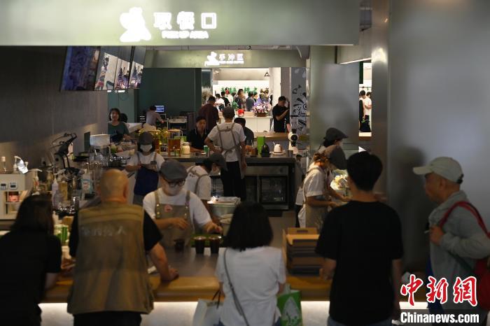 6月19日,甘肅省博物館藝術(shù)生活館在甘肅蘭州開館。該館是甘肅省博物館打造的一處復合型高價值文化空間,融合了咖啡、烘焙、展覽、藝術(shù)書店、文創(chuàng)銷售等多樣化業(yè)態(tài)。圖為游客在咖啡區(qū)排隊等待。中新社記者 李亞龍 攝