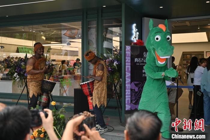6月19日,甘肅省博物館藝術(shù)生活館在甘肅蘭州開館。該館是甘肅省博物館打造的一處復合型高價值文化空間,融合了咖啡、烘焙、展覽、藝術(shù)書店、文創(chuàng)銷售等多樣化業(yè)態(tài)。圖為綠馬真人玩偶(右一)熱舞吸引游人。中新社記者 李亞龍 攝