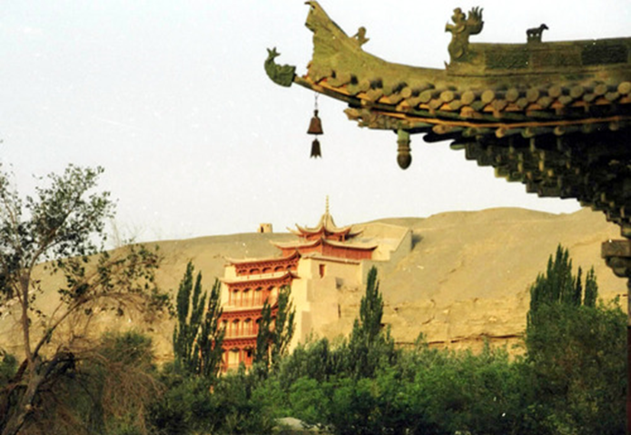 從20世紀70年代末開始,大量先進科技不斷被引入敦煌石窟保護。新技術、新材料、新手段的不斷運用,豐富了敦煌遺產的保護技術和保護手段,有效改變了石窟內部及其環(huán)境的保護狀況,使敦煌遺產的保護工作從原來的搶救性保護,過渡到了科學保護階段。圖為透過敦煌莫高窟前的牌樓一角望去,敦煌莫高窟標志性建筑九層樓依舊雄偉壯觀。新華社記者梁強攝(2004年10月25日發(fā))