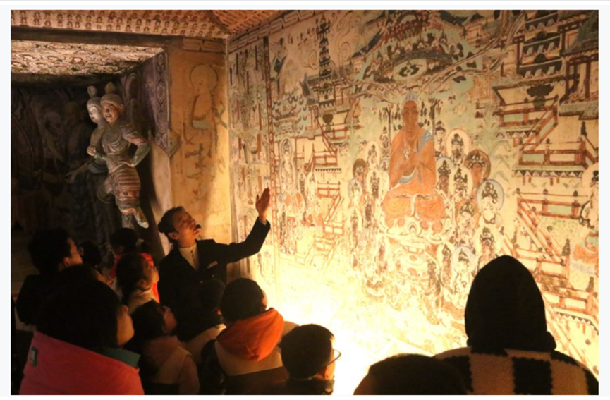 2024年,敦煌市依托當?shù)刎S富的人文遺跡和自然景觀,大力發(fā)展文化研學,建成莫高學堂、鳴沙書院等16個研學基地,推出壁畫臨摹、漢簡學堂等獨具敦煌特色的研學產品,讓游客和學生在參觀的同時進一步體驗敦煌文化的魅力。 據(jù)了解,敦煌市已推出冬春旅游優(yōu)惠政策,對大中小學生免市屬景區(qū)門票,莫高窟對研學團隊開放洞窟由8個增至13個,并配備資深講解員講解。