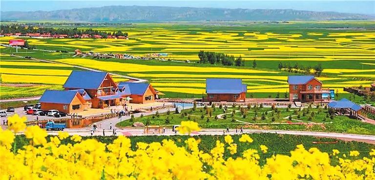 眺望遠(yuǎn)處,一座座大山傲然聳立在半空中,和云朵擦肩而過,山上綠樹成蔭,空氣十分清新。最美的還是田野,爬上山頂往下看,除了空中飛行的鳥兒,一眼望不到邊的是綠油油的田野。227國(guó)道將村莊分割為東、西兩塊大小不等的地域,金黃的千畝油菜花海,夾雜著大麥、馬鈴薯的碧綠條塊,環(huán)繞在村莊四周。人工栽植的云杉松柏、紫葉矮櫻等苗木高低起伏地相擁在家家戶戶的房前屋后,坐落在油菜花海和綠樹環(huán)繞中的村莊與小康農(nóng)舍,恰似航船一樣在金黃的花海中漂浮升沉著,煞是美麗。正是這宜業(yè)宜居、可憩可游、美麗愜意的鄉(xiāng)村生活環(huán)境,讓炒面莊贏得“美麗鄉(xiāng)村”示范村和“環(huán)境整潔村”的美譽(yù)。
