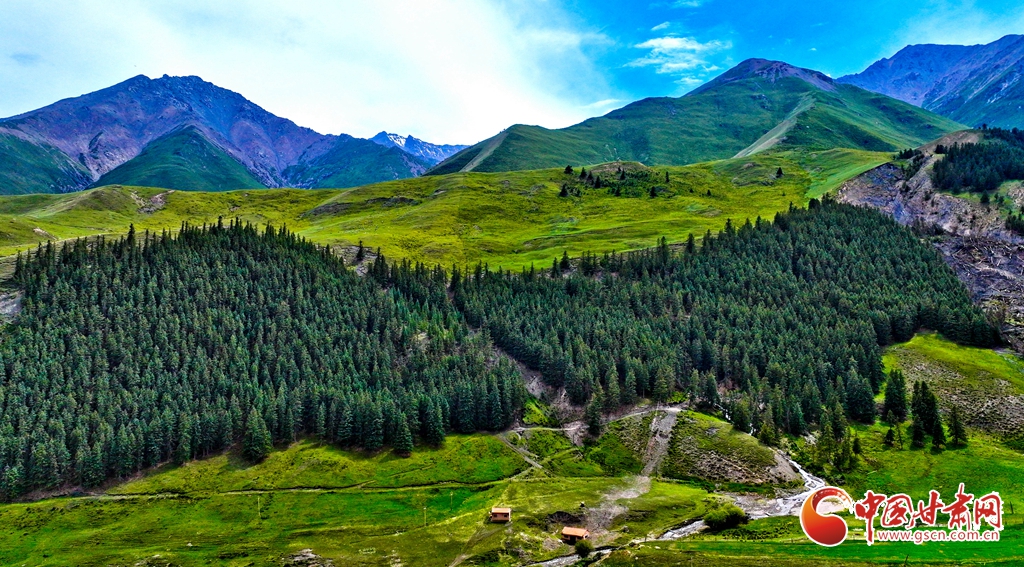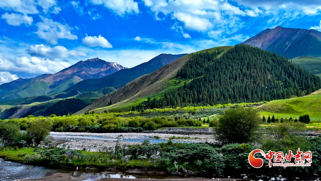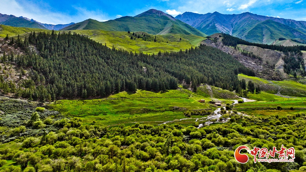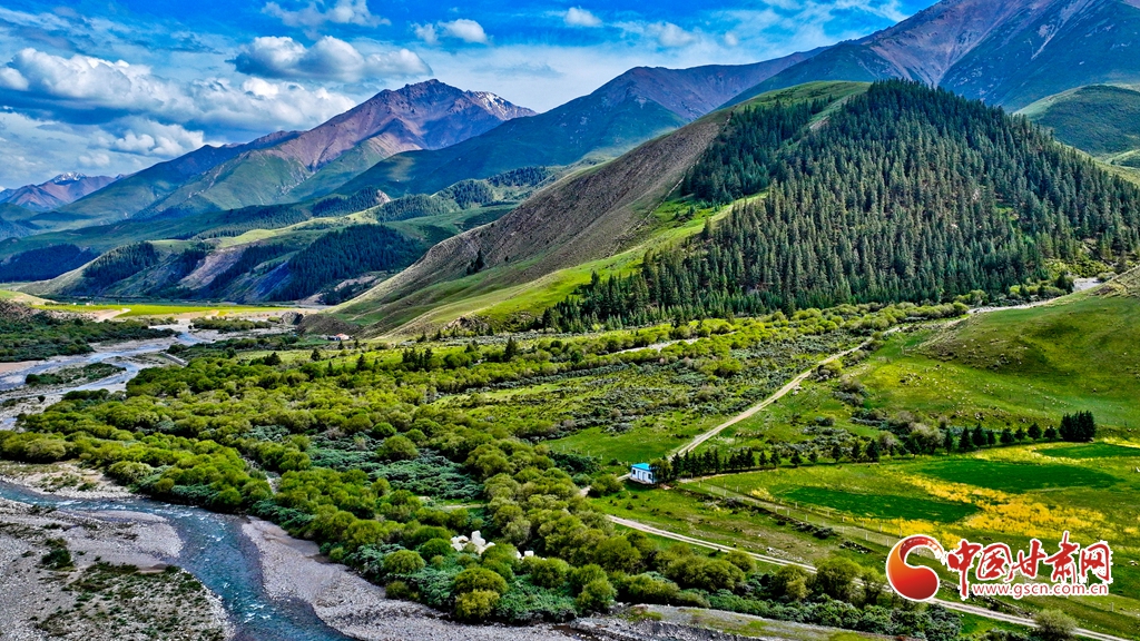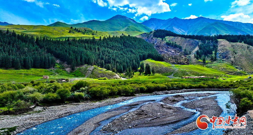 7月2日,祁連山國家公園甘肅省張掖市肅南裕固族自治縣大河鄉(xiāng)段,在高原藍(lán)天白云映襯下,群山環(huán)抱、 雪峰高聳,鳥鳴聲陣陣的濕地、奔騰不歇的黑河水、猶如“巨幅綠毯”的草原,勾勒出一幅風(fēng)光壯美的生態(tài)畫卷。