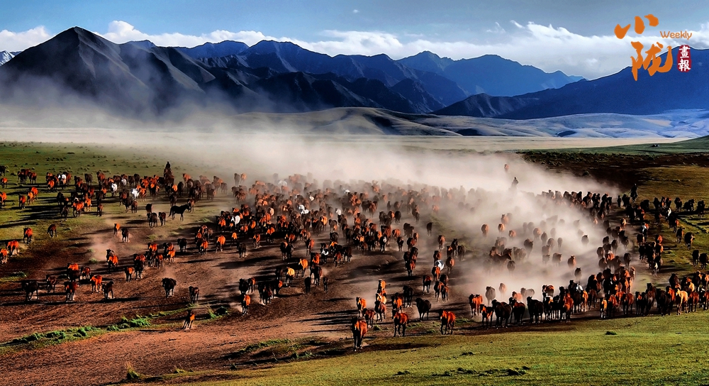 這里有比塞罕壩更壯觀的萬馬奔騰。藍(lán)天白云下,一匹匹雄健的駿馬在疾風(fēng)中奔馳,從一望無際的草場上呼嘯而過,長鬃飛揚(yáng),浩浩蕩蕩。