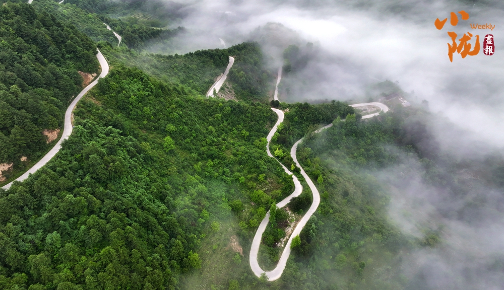 青翠的山嶺之間,云海依著山勢(shì)如潮水般涌動(dòng),待云海稍退,云層掩映下那玉帶似的盤山公路蜿蜒于崇山峻嶺之中,壯麗而神秘。