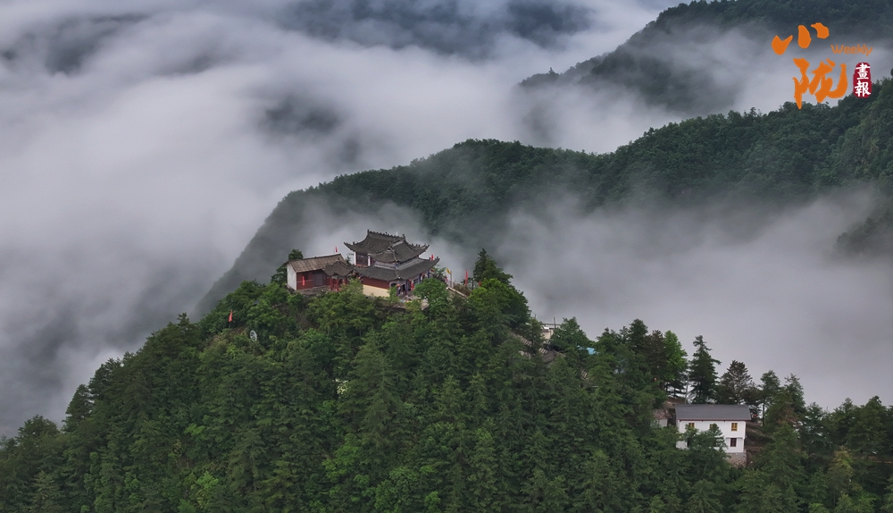白霧覆蓋山巒、金殿聳立山巔。獨(dú)特的地質(zhì)奇觀與云海相襯,構(gòu)成一幅天宮仙境……