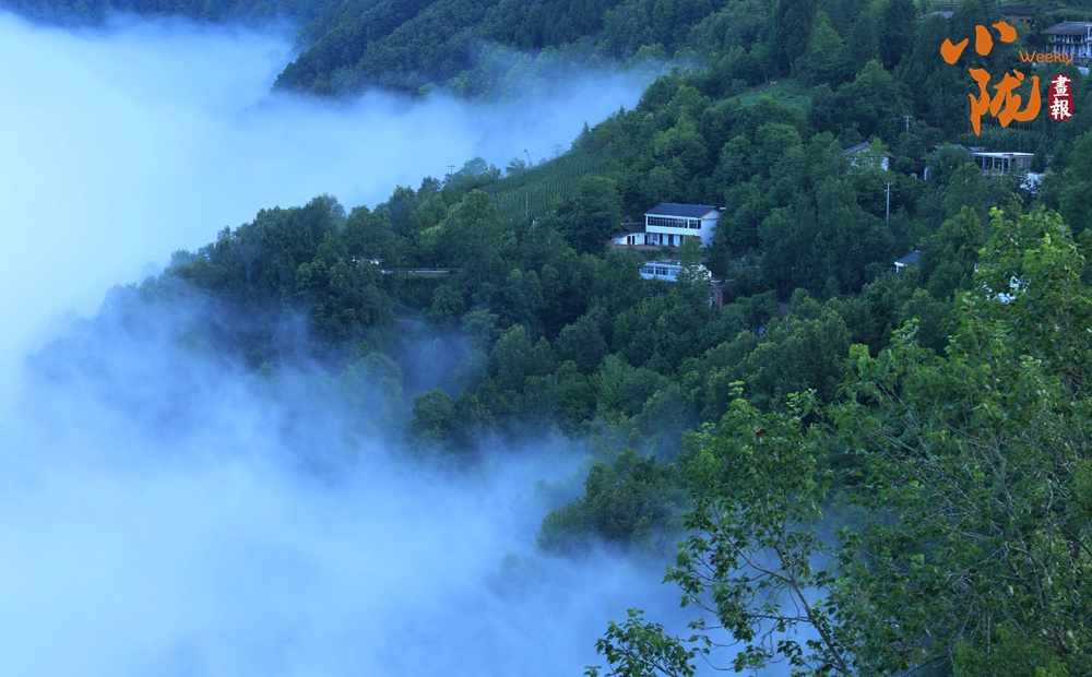 蕩漾在翠綠山間的茫茫云霧,如飄逸的輕紗,舒卷自如,與青山、民居構(gòu)成了優(yōu)美畫卷。
