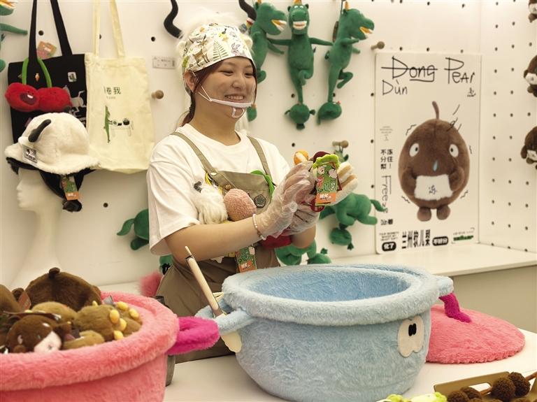 在甘肅省博物館藝術(shù)生活館的購(gòu)物專區(qū),各種食材被做成了毛絨玩具,統(tǒng)一放進(jìn)加大號(hào)的毛絨砂鍋,顧客還可以根據(jù)口味“私人訂制”,最后得到一把全食材版的玩具花束。不少網(wǎng)友看過(guò)視頻后,留言“很符合年輕人的‘口味’。”