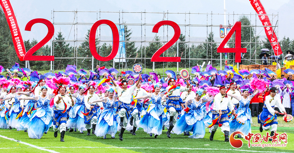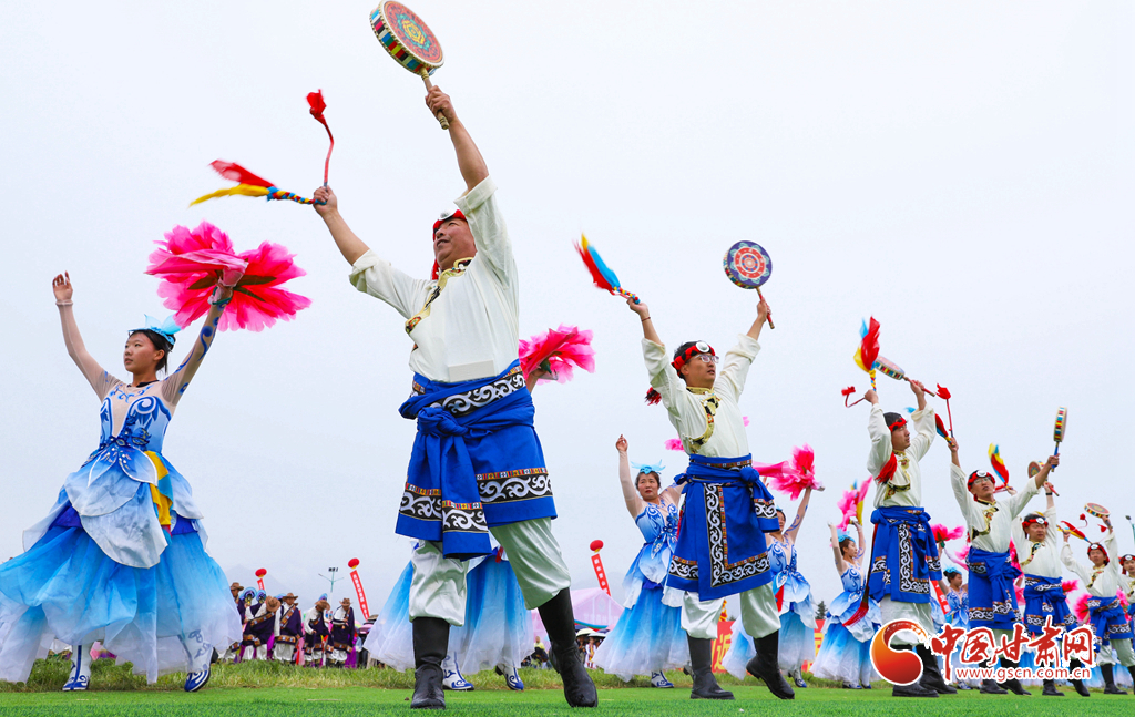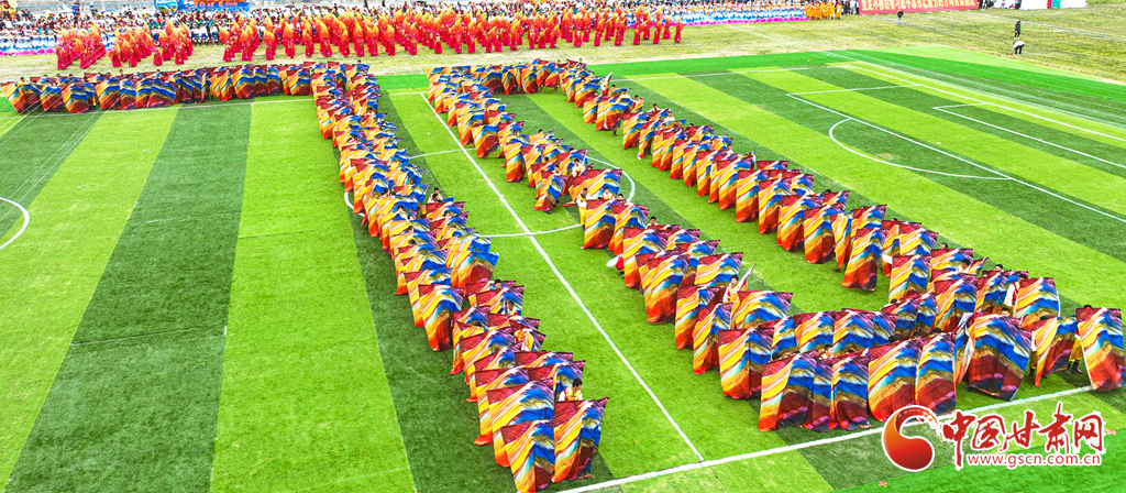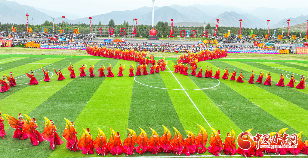 8月13日,甘肅省張掖市肅南裕固族自治縣萬名群眾身著節(jié)日的盛裝,齊聚在索朗格賽馬場上,展開主題為“感恩奮進(jìn)七十載·同心共富新時(shí)代”的歌舞表演,感謝偉大的中國共產(chǎn)黨,謳歌美好的新生活。