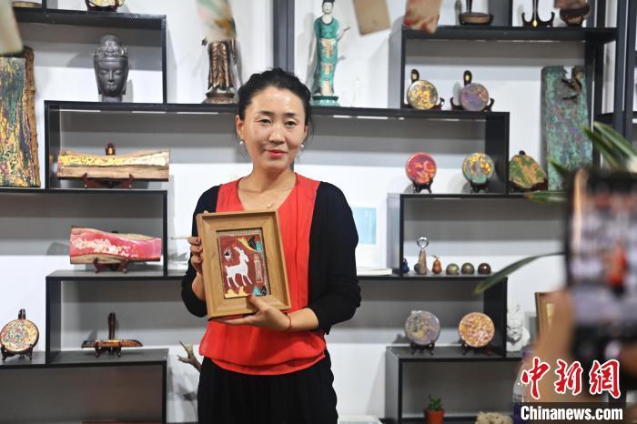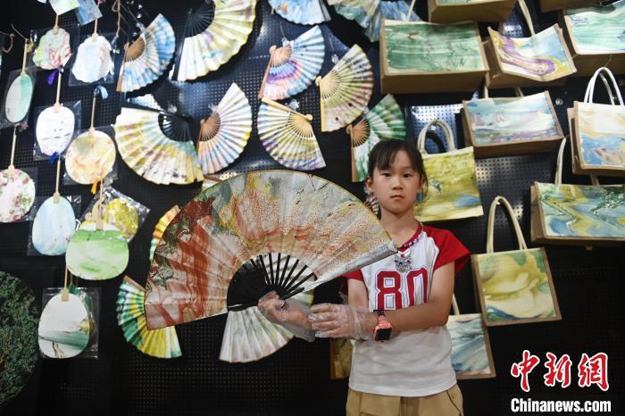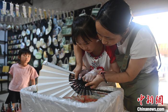 8月20日,甘肅敦煌莫高里工匠村內,學員展示研學成果。工匠村開設了泥板畫、彩繪、雕塑制作、剪紙、農耕體驗等課程,現(xiàn)已發(fā)展成為一個集敦煌文化講堂、壁畫書法研習、美術設計、彩塑制作教學、篆刻藝術、傳統(tǒng)釀酒體驗、農業(yè)產業(yè)發(fā)展等于一體的多功能實訓基地。中新社記者 李亞龍 攝
