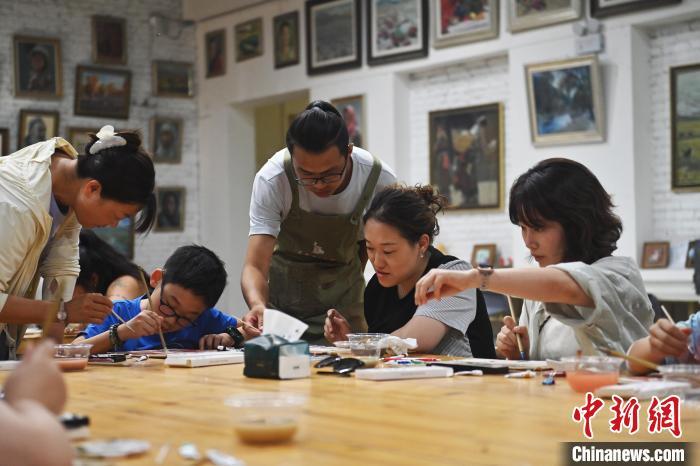 8月20日,甘肅敦煌莫高里工匠村內,學員參觀研學產品。工匠村開設了泥板畫、彩繪、雕塑制作、剪紙、農耕體驗等課程,現(xiàn)已發(fā)展成為一個集敦煌文化講堂、壁畫書法研習、美術設計、彩塑制作教學、篆刻藝術、傳統(tǒng)釀酒體驗、農業(yè)產業(yè)發(fā)展等于一體的多功能實訓基地。中新社記者 李亞龍