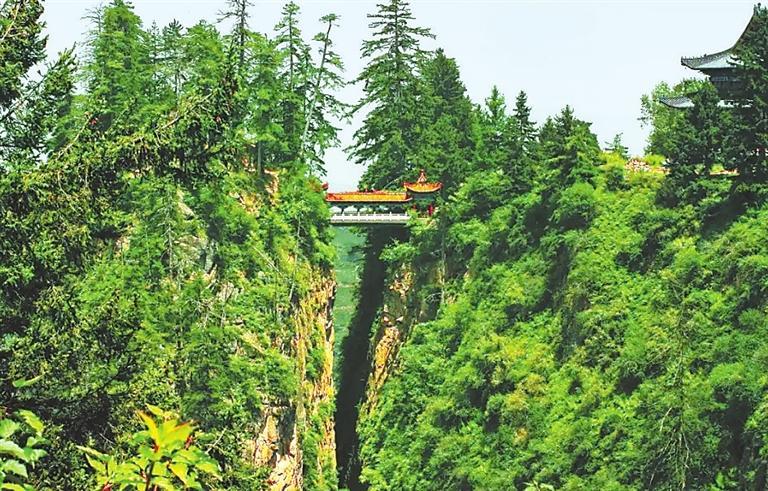 其實,石門山系小隴山林區(qū)的余脈,蘊藏著得天獨厚的植物資源,有我國南北的各種野生植物百余種,其中有很多還是園林中的珍品。據(jù)景區(qū)資料得知,石門山由北峰、麒麟峰、南峰構(gòu)成。北峰建有無量殿、靈官殿、文昌宮、三清殿、鐘樓。麒麟峰建有圣母宮、三肖殿、三仙庵。南峰峰頂建有玉皇閣和三官殿。這些殿宇大多為明清重修,依山就勢,錯落有致,風(fēng)格纖巧,玲瓏俊秀,最小的殿宇僅有5至6平方米,在石門山的萬綠叢中時隱時現(xiàn),猶如一幅濃淡相宜,層次分明的水墨畫,形成了石門山特有的風(fēng)韻。