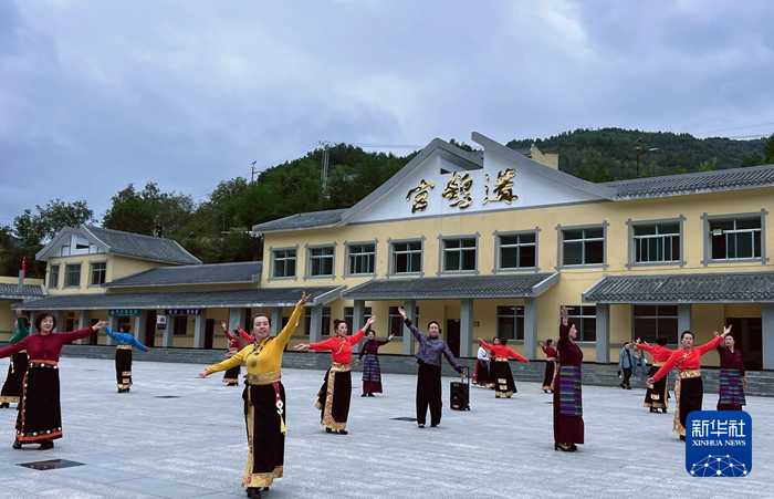 在官鵝溝大景區(qū)內(nèi),身著民族服飾的表演者載歌載舞。(受訪者供圖)
